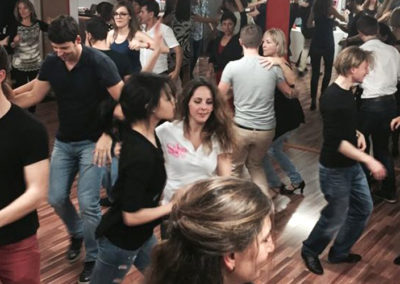 Cours, stages, soirées : tu progresses en salle puis tu prends confiance en conditions réelles, entouré(e) et soutenu(e).